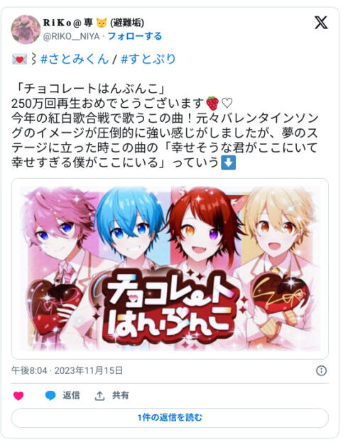 — ちょこ♪ (@choco15151515) November 13, 2023